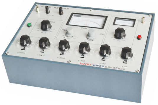 QJ78A 型直流高阻電橋由六檔量程倍率和六只十進(jìn)測量盤組成,內(nèi)附有測量用直流穩(wěn)壓電源和高靈敏檢流計(jì),適合計(jì)量單位,工廠和科研單位對高值電阻的精密測量。使用方便,測量重復(fù)性好。