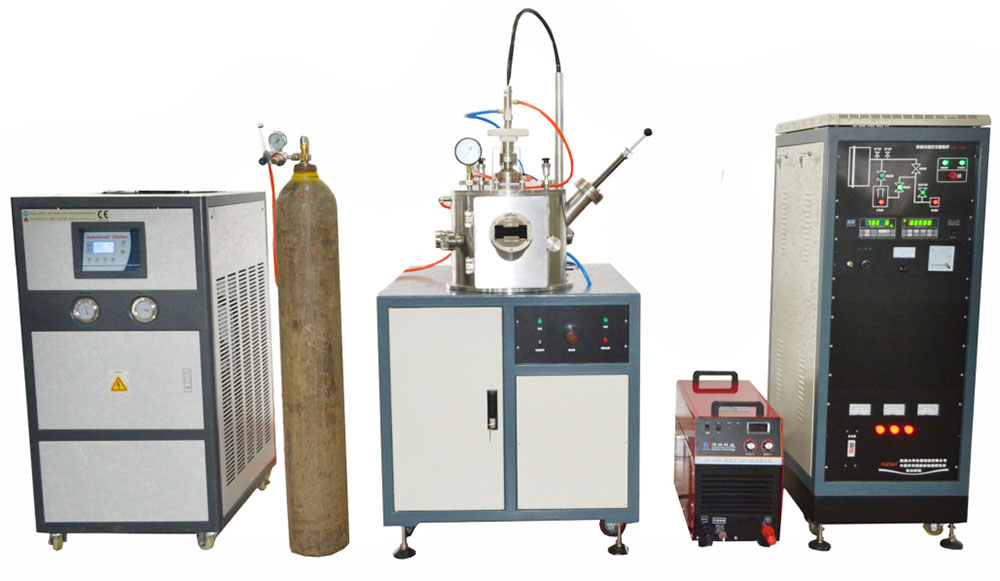 本系列裝置由我公司和中國科學(xué)院材料物理重點(diǎn)實(shí)驗(yàn)室聯(lián)合研制。設(shè)備由真空機(jī)組、真空室、電弧槍、熔煉電源、銅坩堝、水冷設(shè)備及測量系統(tǒng)等組成。