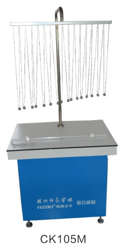 用于演示單擺周期與擺長(zhǎng)的關(guān)系。蛇擺即擺波,它由多個(gè)排成一列的擺長(zhǎng)漸變的單擺組成,由于單擺的周期與擺長(zhǎng)有關(guān),擺長(zhǎng)越長(zhǎng)周期越長(zhǎng),所以當(dāng)它們同時(shí)擺動(dòng)后,在空間的排列呈現(xiàn)周期性的變化。手動(dòng)釋放擋板后,處在一條水平線上的單擺被同時(shí)釋放,單擺開始擺動(dòng);隨著擺動(dòng)次數(shù)的增加,原本整齊的單擺逐漸變成一條曲線來回?cái)[動(dòng),就像是蛇的運(yùn)動(dòng),過一段時(shí)間之后,當(dāng)單擺全部靜止后,又恢復(fù)為一條直線。